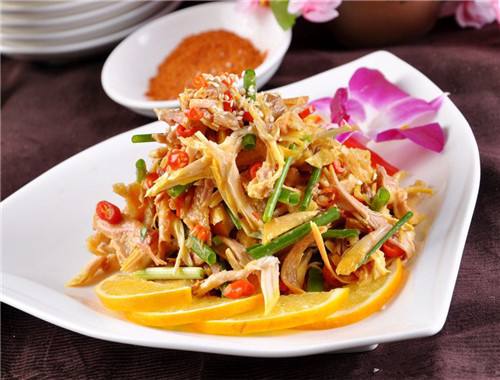 手撕鸡是一道中国的地方传统名菜。外皮金黄可谓手撕鸡的卖点之一,在金黄的鸡皮上,晶莹而散发甘香,肉质细腻,油脂适中,鲜美含汁,嚼之既不油腻也不柴硬,并带有浓郁的鲜香味,直至骨髓。鸡肉蛋白质的含量比例较高,种类多,而且消化率高,很容易被人体吸收利用,有增强体力、强壮身体的作用。肉有温中益气,补精添髓,补虚益智的作用。《神农本草经》上说常吃鸡肉能通神。鸡肉含有对人体生长发育有重要作用的磷脂类,是中国人膳食结构中脂肪和磷脂的重要来源之一。对营养不良、畏寒怕冷、乏力疲劳、月经不调、贫血、虚弱等有很好的食疗作用。