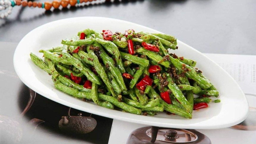 做法十 干煸四季豆,不要再过油,这样做,四季豆快速熟透还入味,超下饭。四季豆口感甜脆,很多人爱吃,但很少会在家里做,因为四季豆必须炒熟才能吃,总担心自己炒的四季豆不会熟,而且炒四季豆要花很长的时间,火又不能太大,不然四季豆表面焦了,里面还没熟。在饭店里,我们吃的干煸四季豆,由于要快速煮熟煮透,都会在油锅里炸一下,这样的四季豆吃起来虽然也很香很脆,但就是太油腻了。其实做干煸四季豆,不要再油炸,多加一步,四季豆不油不腻,还入味。 这一步就是把四季豆先放到水中焯熟,在水中,四季豆的受热更均匀,所以四季豆熟的也会更彻底,吃起来也会更安心,另外将四季豆焯熟后再煸炒,这样炒出的四季豆就会更脆,还入味。不过有些人说焯水后的四季豆会发黄,而且不会脆,其实焯四季豆和煸炒四季豆是有诀窍的,您学会了也能做出又香又脆的干煸四季豆,有兴趣的读者继续往下看吧。 【干煸四季豆的做法】 材料:四季豆500克、橄榄菜一汤勺、蒜头三粒、盐半茶勺、鸡精一茶勺; 制作步骤: 1、四季豆长度大概都有十几厘米,所以我们要将四季豆摘短,可能有人嫌用手摘豆子很麻烦,所以直接用刀切豆子,这个方法虽然方便了很多,但就没办法将豆筋去除,四季豆吃起来会比较老。四季都摘好后,用清水多冲洗几遍,然后再放到盐水里浸泡半小时; 2、烧一锅热水,水可以多一些,在水中加入少许的食用油和盐,有些人说焯水后的四季豆会发黄,就是因为少了这一步。四季豆在水中焯熟后捞起,还需马上放入冰水中,或者用流动的水将四季豆降温,这样炒出的四季豆才会脆。 3、锅里加少许的油,其实炒四季豆不需要太多的油,因为四季豆不吃油,平时在饭店里觉得四季豆油腻腻的,那是为了让四季豆熟透,将四季豆放到油锅里炸了。油热后将拍碎的蒜头在油锅中爆成金黄色,蒜头爆过后,辛辣味降低了,香气更浓郁了。笔者还加了些橄榄菜,将橄榄菜也煸炒出香味。 4、将四季豆沥干水,放到锅里,和蒜头,橄榄菜一起煸炒,虽然这时候的四季豆已经熟了,但是不能随便炒几下就出锅哦,还需要不停的煸炒,将四季豆表面的水份煸干,在煸炒的过程中,会发现四季豆有些破皮的感觉,这时候加入少许的盐继续煸炒,盐不用太多,因为橄榄菜也会咸了,四季豆太咸了,就吃不出豆子原本的甜味了,等盐煸炒融化,关火,在加少许的鸡精调味即可。 按照笔者的方法,做出的干煸四季豆又香又脆,又入味,四季豆裹满了蒜头和橄榄菜的香气,吃起来特别的下饭,而且制作的时候不用再炸了,没有了油腻腻的感觉,回归了蔬菜应有的清爽,特别适合家里老人的胃口。