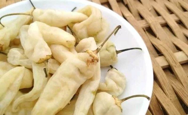 下面就把白辣椒的做法教给大家: 1.选一个晴朗的天气。✲✲好是夏天或者秋初。太阳很大的时候晒。 2. 建议选大一点的,肉质厚,偏成熟的辣椒。必须新鲜,可以观察辣椒蒂,是绿色的。不能是黑色的,如果是黑色的,就不新鲜。辣椒必须完整,没有破损发黄发黑,不能是灯笼椒,灯笼椒,晒出来只剩一层皮,没有肉质,不好吃。如果喜欢吃辣的,尽量选择颜色是深绿色的,如果怕辣,就选择浅色的。根据自己口味选择原材料。 3. 把辣椒洗干净,沥水,烧一锅开水,辣椒放锅里 打个滚儿,变色就马上捞出。时间不能太久,约一分钟左右。 4.太阳下晒几个小时。就能看见辣椒慢慢变白。再翻另一面晒。在选择做白辣椒之前,✲✲好先看天气预报,如果没有一次晒白,碰上阴雨天气,白辣椒的外观和味道都会大打折扣。 5.收回已变白的辣椒,在房间阴凉半小时以上,直到辣椒表面没有温热的感觉,用剪刀小心去除蒂部,同时,将辣椒剪开一分为二,必要时,用筷子搅拌几次,也可以戴上手套,轻轻揉捏,便于盐分均匀渗透进入辣椒的肉质内;再晒一天,晒至七八分干就行了。 6. 选择密封性良好的土陶罐或者坛子,将用食盐均匀搅拌好的白辣椒,装入罐或坛中,用保鲜膜扎好入口,同时,坛沿用适量的清水浸泡,使之与空气隔绝,确保其密封性。等待7天。在这期间,保持坛沿的水量,防止空气进入导致腐败变质;一个星期后就可以入菜了。如果没有坛子,也可以晒得比较干一点。用保鲜袋装好,放冰箱保存。 一个星期后,白辣椒成功制作好了。可以用来做成各种美味的白辣椒系列菜品,没有立即吃完的,可以继续放在坛中保留或选择放在冰箱冷藏,但时间不宜过长,一个月以内还能保持白辣椒的美味,制成的白辣椒当佐料,炒腊肉,五花肉,火焙鱼,鸡胗,腊鸭……味道都是极好的,清脆爽口,香辣醇厚,浓香四溢。令人垂涎飞流直下三千尺,吃上一箸,唇齿留香绕梁味不绝。 |