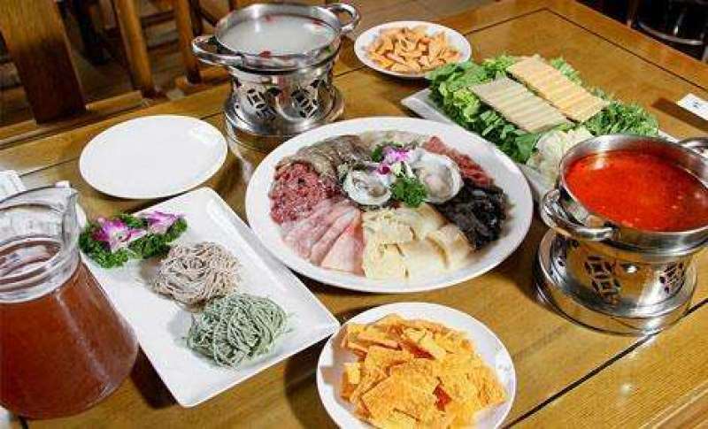 八生火锅制作调料:小葱(15克) 姜(15克) 猪油(炼制)(25克) 盐(5克) 味精(5克) 香油辣酱(30克) 芝麻酱(30克) 香菜(15克) 胡椒粉(3克) 虾酱(20克) 八生火锅制作原料:鸡胸脯肉(100克) 鸡肫(100克) 虾仁(100克) 猪腰子(100克) 牛里脊肉(100克) 鱿鱼(鲜)(100克) 鹅肠(100克) 鸡腰子(100克) 冬笋(150克) 腌雪里蕻(50克) 菠菜(150克) 生菜(150克) 油条(100克) 粉丝(150克) 豆腐(南)(150克) 制作方法 1. 鸡肫洗净批切成薄片,整齐地排列于盘中; 2. 鸡胸脯肉洗净,批切成薄片,整齐地排列于盘中; 3. 猪腰洗净,批切成薄片,整齐地排列于盘中; 4. 鱿鱼治净,批切成薄片,整齐地排列于盘中; 5. 牛里脊批切成薄片,整齐地排列于盘中; 6. 鹅肠切断、河虾仁、鸡肾分别装在另三只盘中; 7. 以上八种原料均包上保鲜纸,待用; 8. 油条炸过切片,装于盘中; 9. 龙口粉丝用冷水浸软,装于只盘中; 10. 豆腐切块,装入另一盘中; 11. 冬笋削去外皮,洗净,切片; 12. 炒锅洗净置旺火上,加入清汤1000毫升,再加入冬笋片、雪菜、精盐,烧沸后撇去浮沫,加味精、猪油、葱段,姜片倒入火锅; 13. 揭去“八生”原料上的保鲜纸,带上油条、洗净的菠菜、生菜、粉丝、豆腐一起上桌; 14. 点燃酒精炉,放入火锅底座,随意选用“八生”和“四色蔬菜”入水氽熟,蘸辣酱、芝麻酱、香菜末、胡椒粉等小料食用。 |