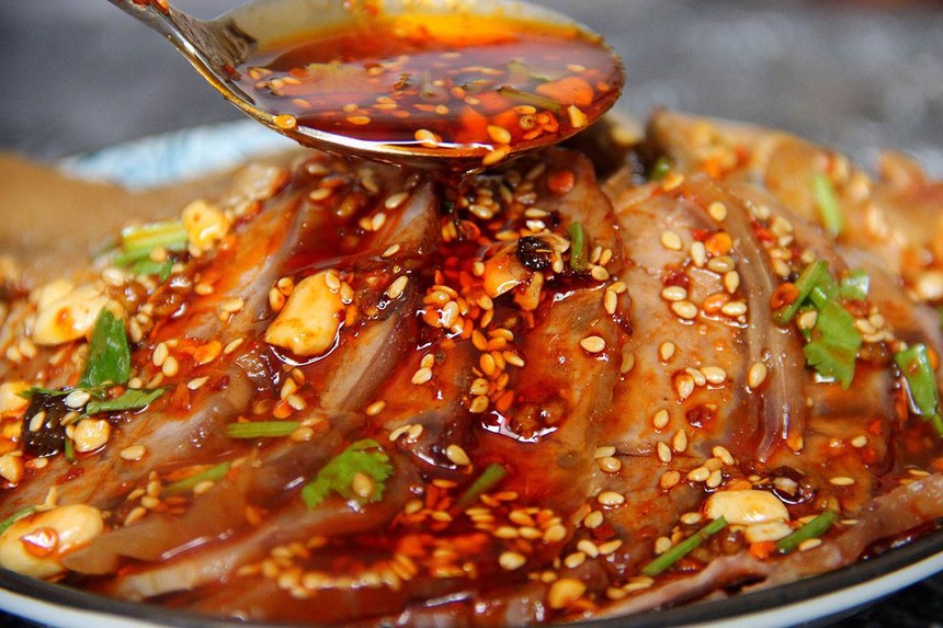 夫妻肺片实为牛头皮、牛心、牛舌、牛肚、牛肉,并不用肺。夫妻肺片片大而薄,粑糯入味,麻辣鲜香,细嫩化渣。这一道菜,在四川是非常非常出名的,如果你要来成都的话,一定要吃这款夫妻肺片!