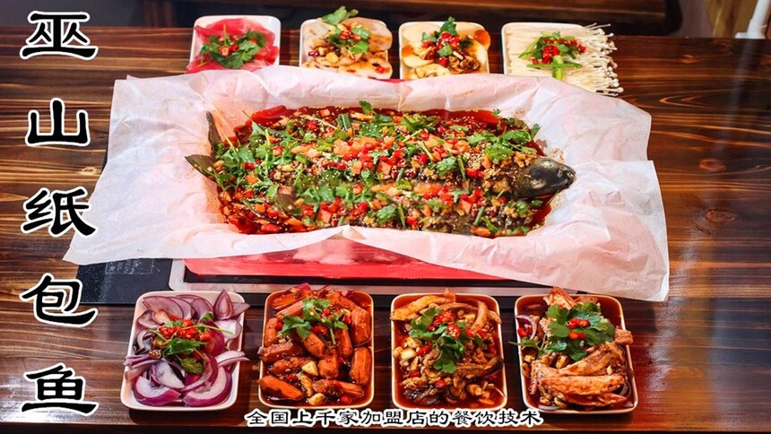 纸包鱼制作:备各种酱料,如蒜香复合粉,熬制复合酱,小米辣碎,蒜油,等等。复合酱红油就是复合酱里面的油。然后用这些备好的酱料按配方调制zui后的成品鱼酱。鱼宰杀干净改刀蒸七成熟,放纸上浇成品鱼酱,包起来放鱼锅里烤五分钟关小火打开翻面,吃一会把纸抽掉加汤下配菜。(半斤热水半汤勺复合酱的比例)也可以把配菜拌一点成品鱼酱放锅里煎着吃。(纸可以不用抽掉)弄三五个小缸子,一个缸子一份成品鱼酱。客人点鱼了,这边杀鱼,那边蒸锅开火。三分钟杀鱼改刀,七分钟蒸鱼浇酱包鱼。上桌烤五分钟。前后也就得二十来分钟。
